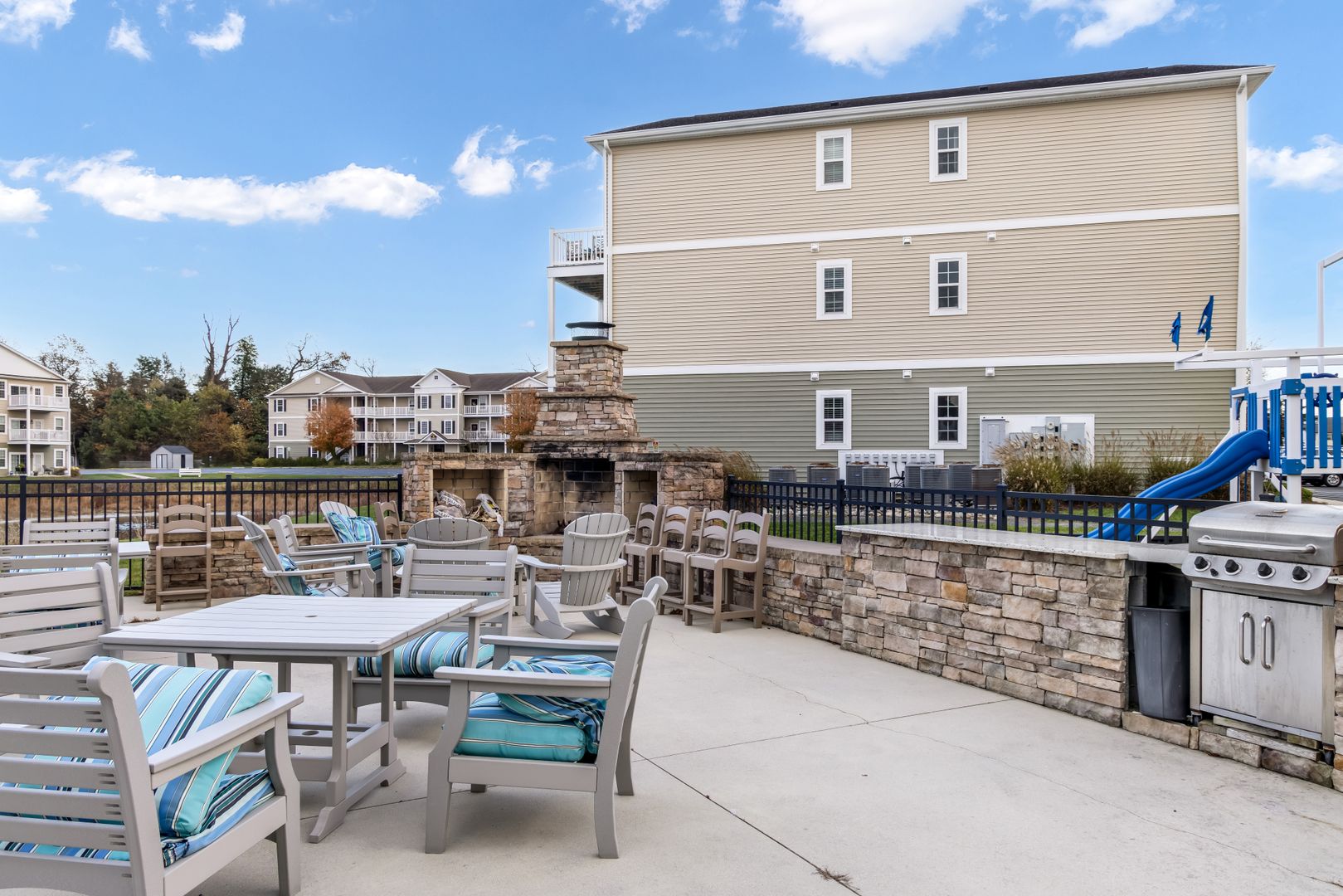 Our community features a clubhouse with a fitness center and lounge area, saltwater pool overlooking the Beach Plum Pond, outdoor wood burning fireplace, and grill area. All buildings have elevators and most apartments include a separate storage closet. Other amenities include a dog park and a walking/jogging trail surrounding the pond.